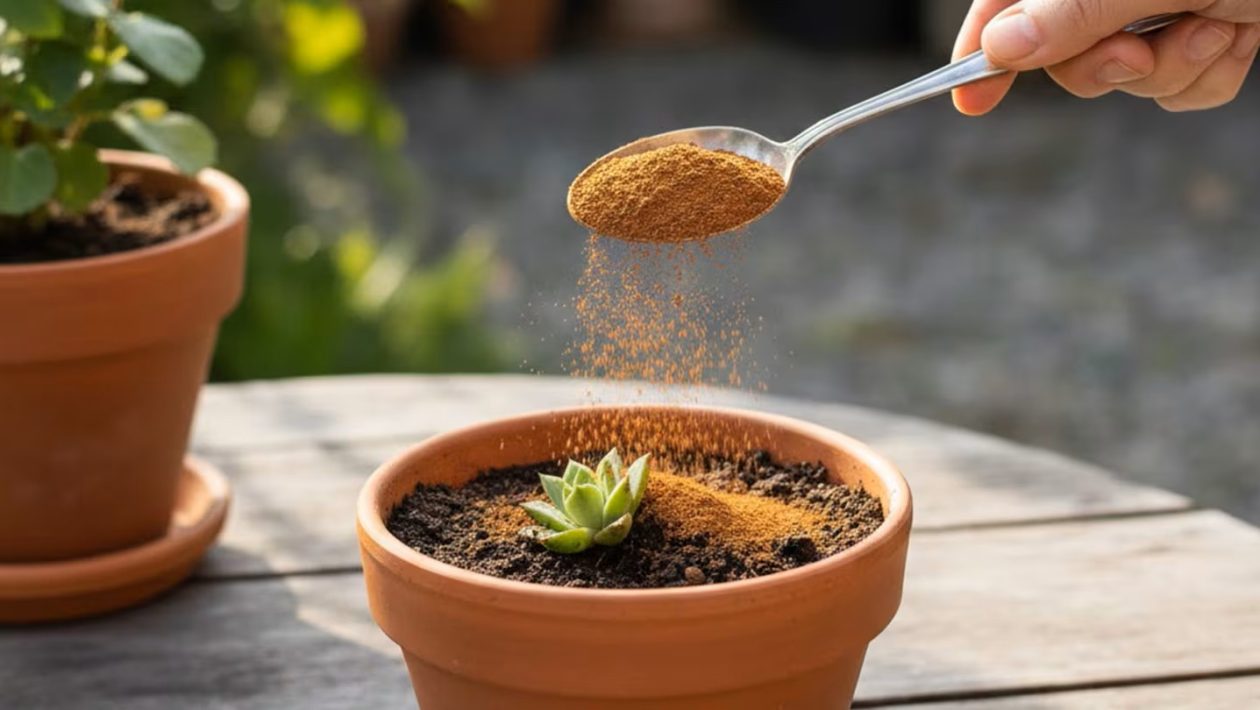 Cynamon jest szczególnie przydatny, gdy zauważysz białe grzyby lub plamy na glebie lub jeśli zamierzasz przesadzić roślinę i chcesz chronić jej korzenie.